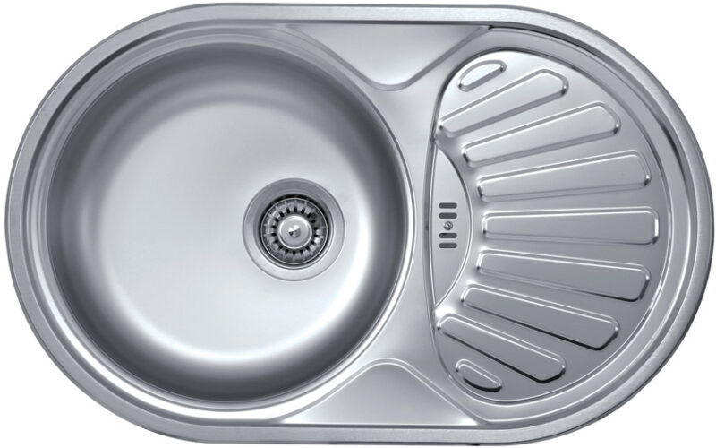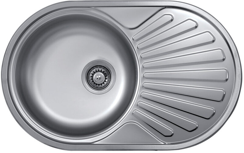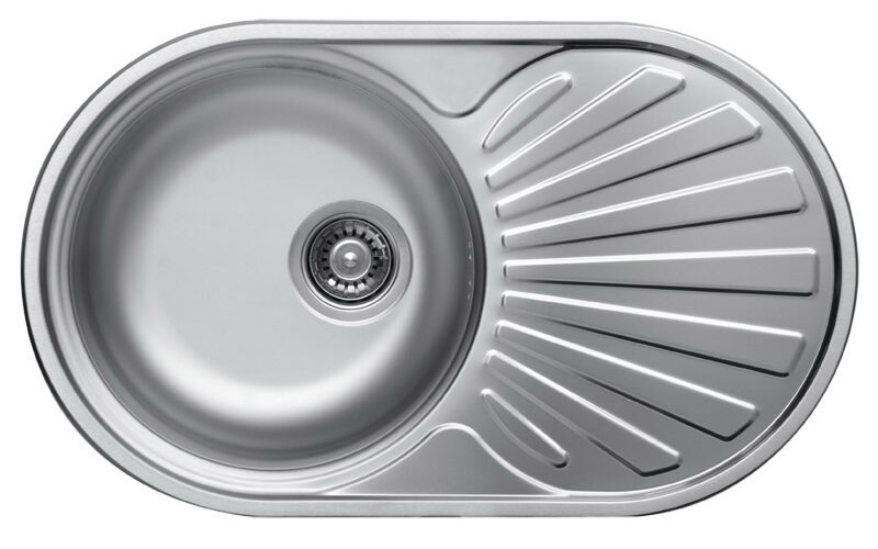 Мойка из нержавеющей стали, врезная, овальная, сифон 1 1/2 Толщина 0,60 Размер 480×770 Размер ванны Ø390х160 Сифон S700K Поверхность матовая/декор