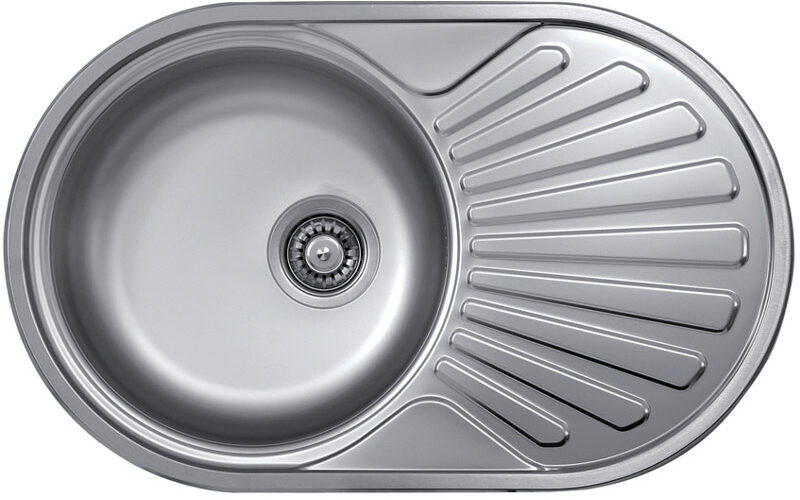Мойка из нержавеющей стали, врезная, овальная Толщина 0,80 Размер 480х770 Размер ванны Ø390х175 Сифон S701K Поверхность полированная/декор