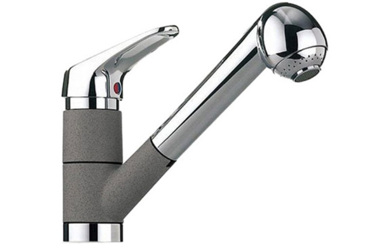 Смеситель однорычажный, для кухни, покрытие – хром/гранит, способ монтажа – вертикальный.